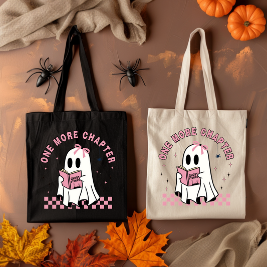 One More Chapter Canvas Tote Bag – Christian Halloween Bookish Ghost
