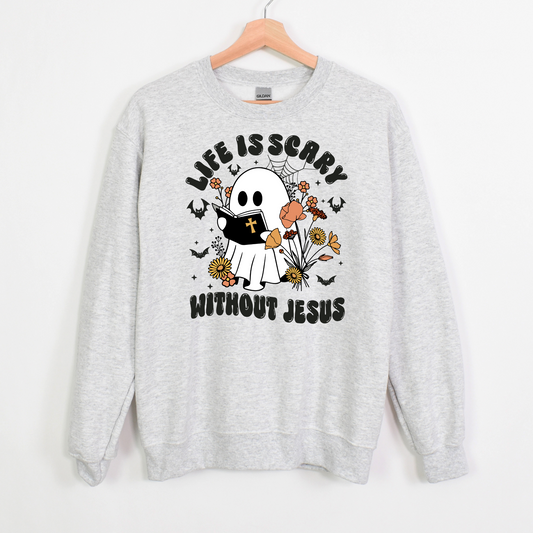 "Life Is Scary Without Jesus" Christian Halloween Sweatshirt
