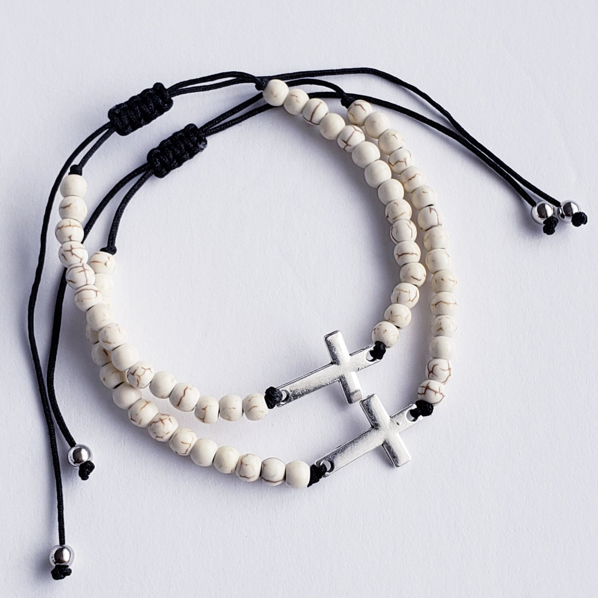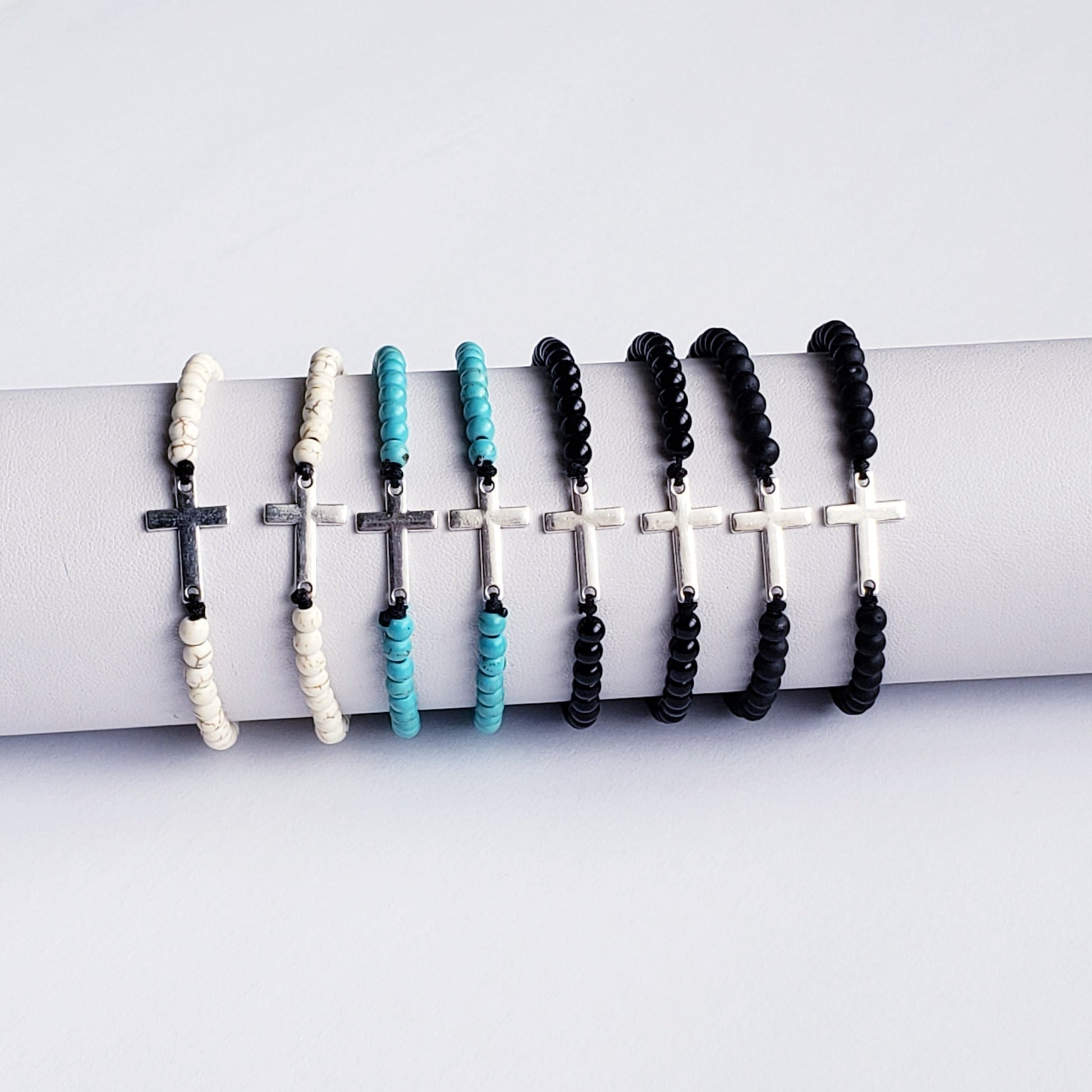 A stunning piece that effortlessly combines elegance and spirituality. This adjustable beaded bracelet features exquisite 4mm beads that add a touch of color and sophistication to your outfit. The stainless steel cross charm serves as a symbol of faith and adds a beautiful contrast to the beads. With its adjustable design, this bracelet offers a comfortable fit for wrists of all sizes. Whether worn alone or stacked with other bracelets, this bracelet is a versatile accessory that adds a touch of grace and spirituality to any ensemble.