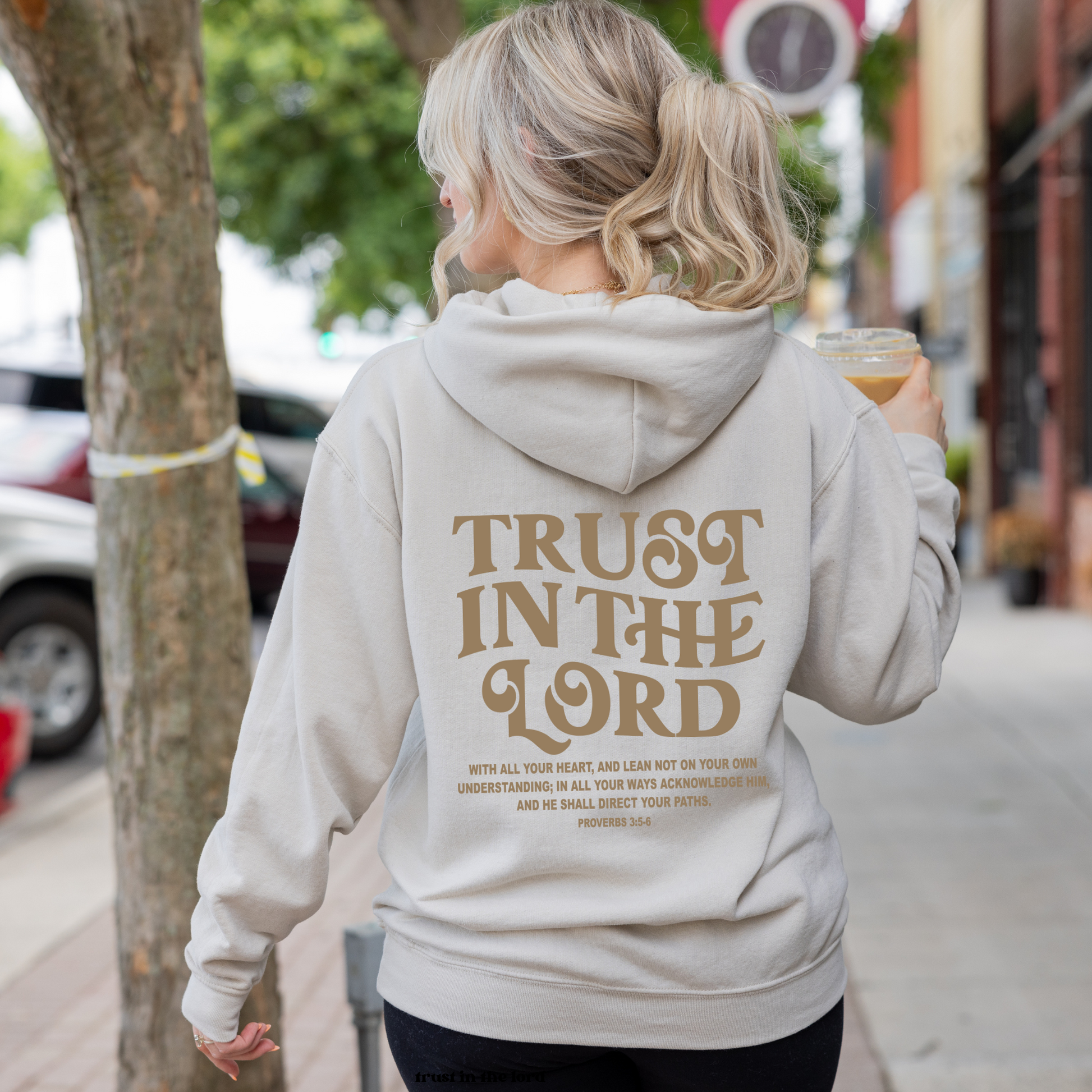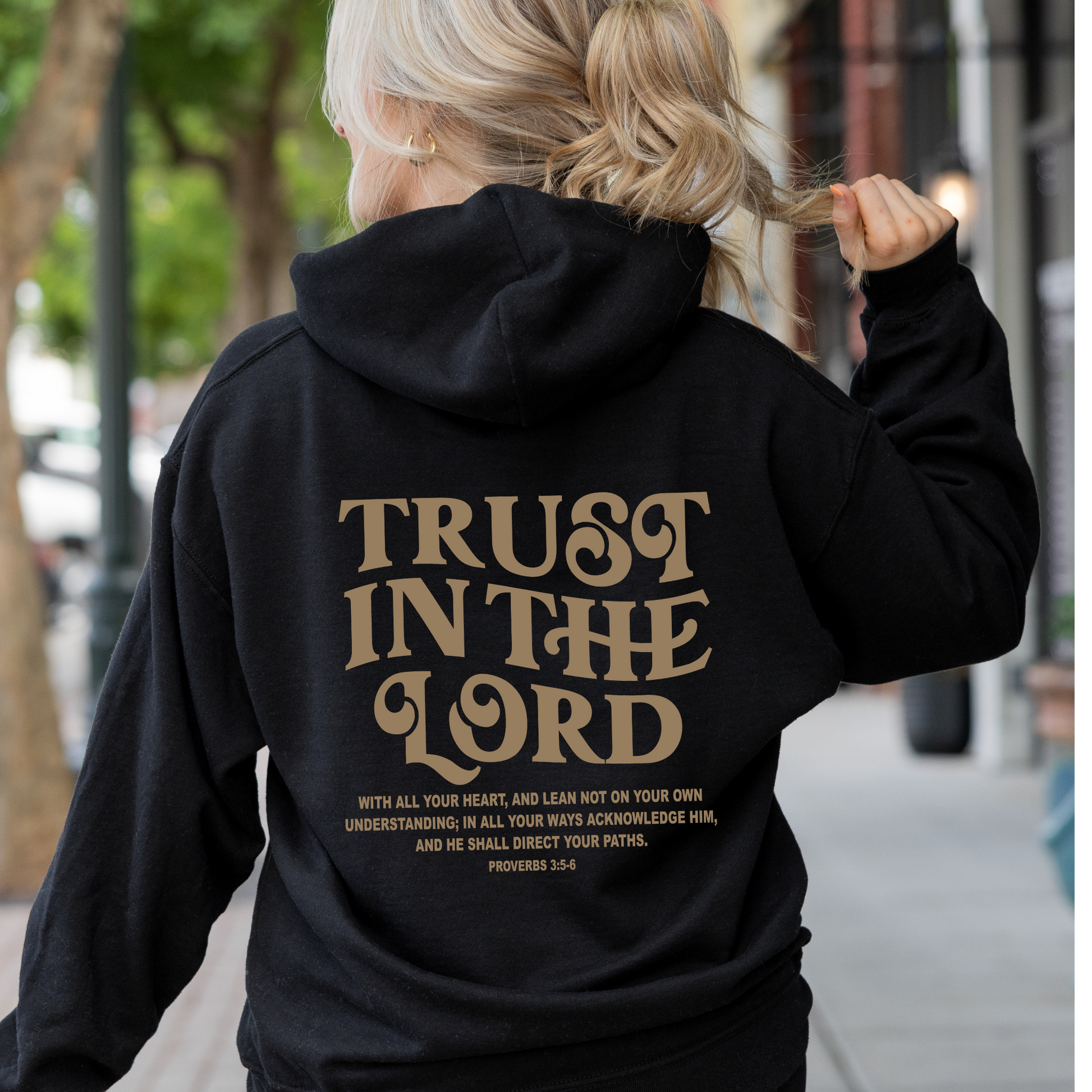 Embrace the power of trusting in the Lord with our Faithful Trust Hoodie. This comfortable and chic hoodie features the encouraging words "Trust in the Lord" on the front and the uplifting Bible verses Proverbs 3:5-6 printed on the back. Made with high-quality material, this hoodie serves as a reminder of the importance of relying on faith in challenging times. Whether you're running errands or relaxing at home, let this hoodie be a beacon of hope and inspiration to all. Embody the message of trusting in the Lord with style and grace in our Faithful Trust Hoodie.