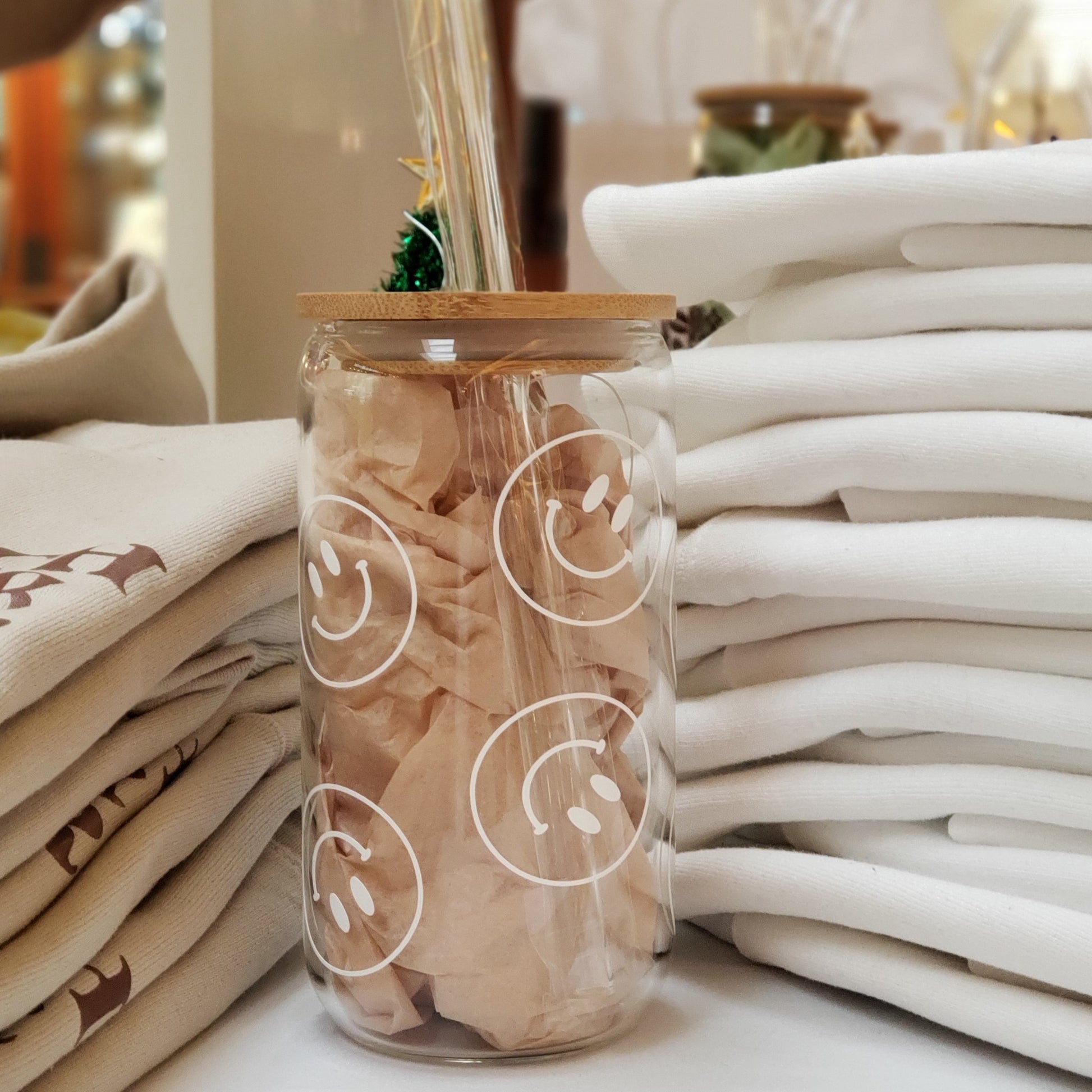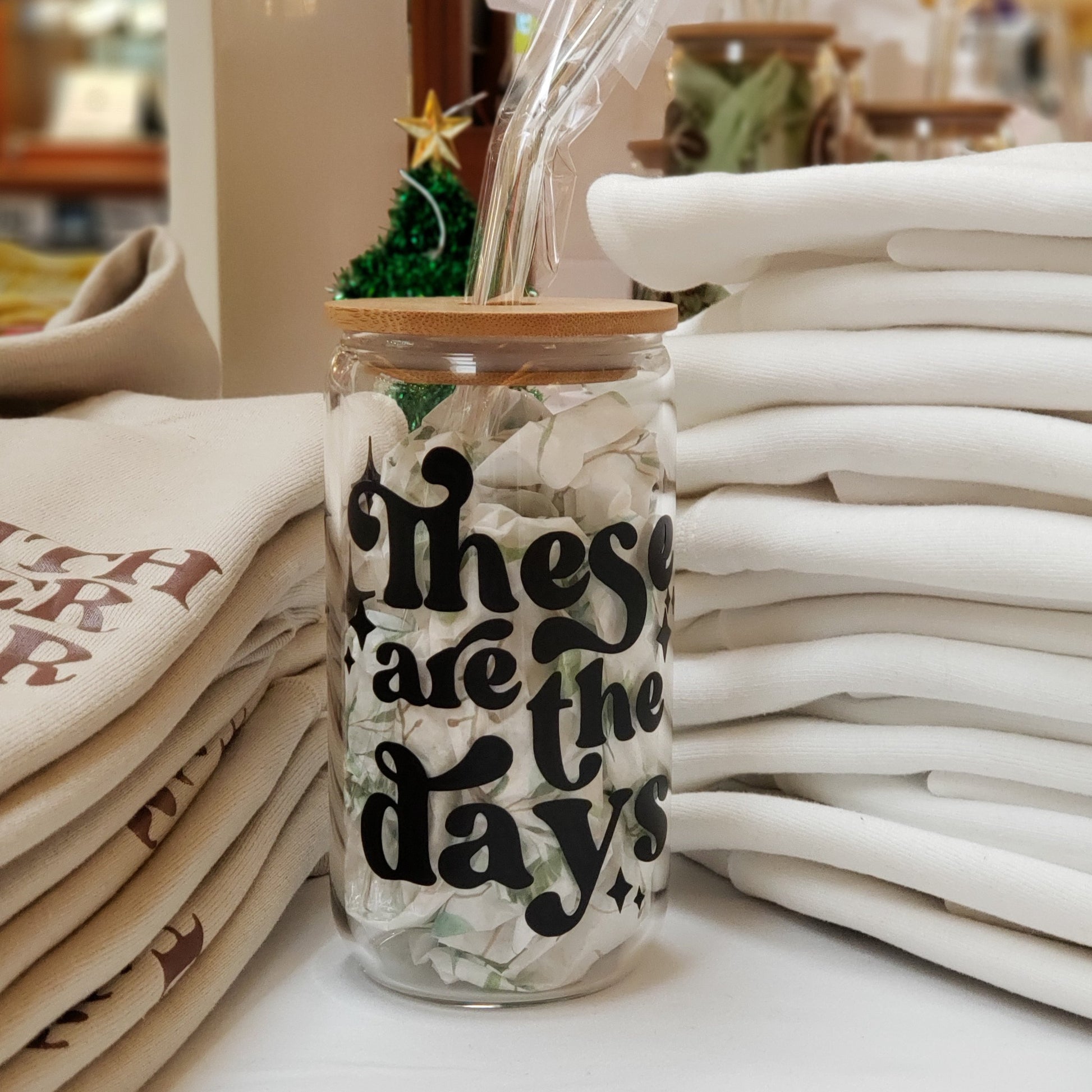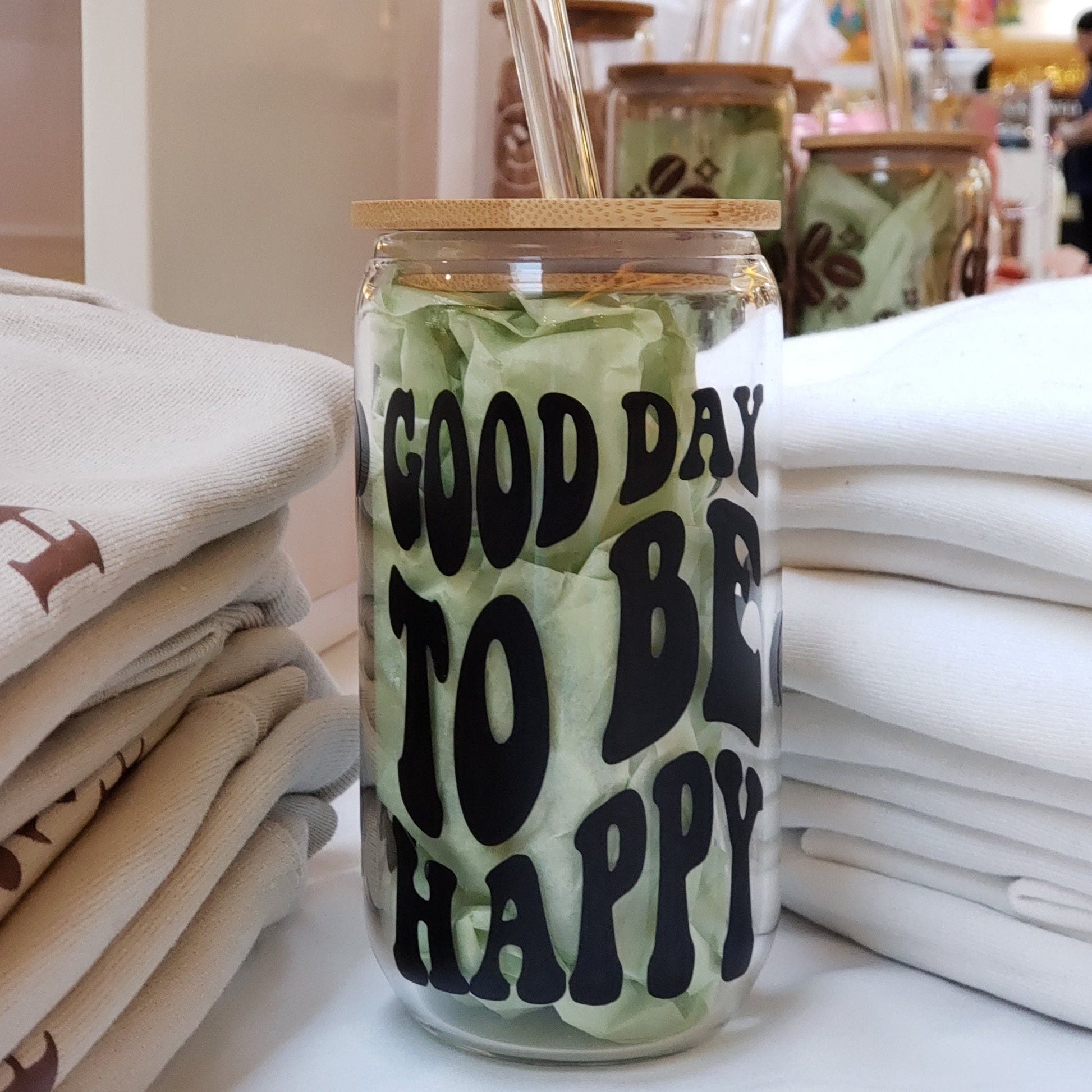 Our tumblers feature the quote "These Are The Days" in a stylish boho font. It serves as a reminder to cherish each moment and live life to the fullest. Another features the phrase "Good Day To Be Happy", expressing positivity and gratitude for each new day. And another tumbler features a series of round white smiley faces covering the entire glass