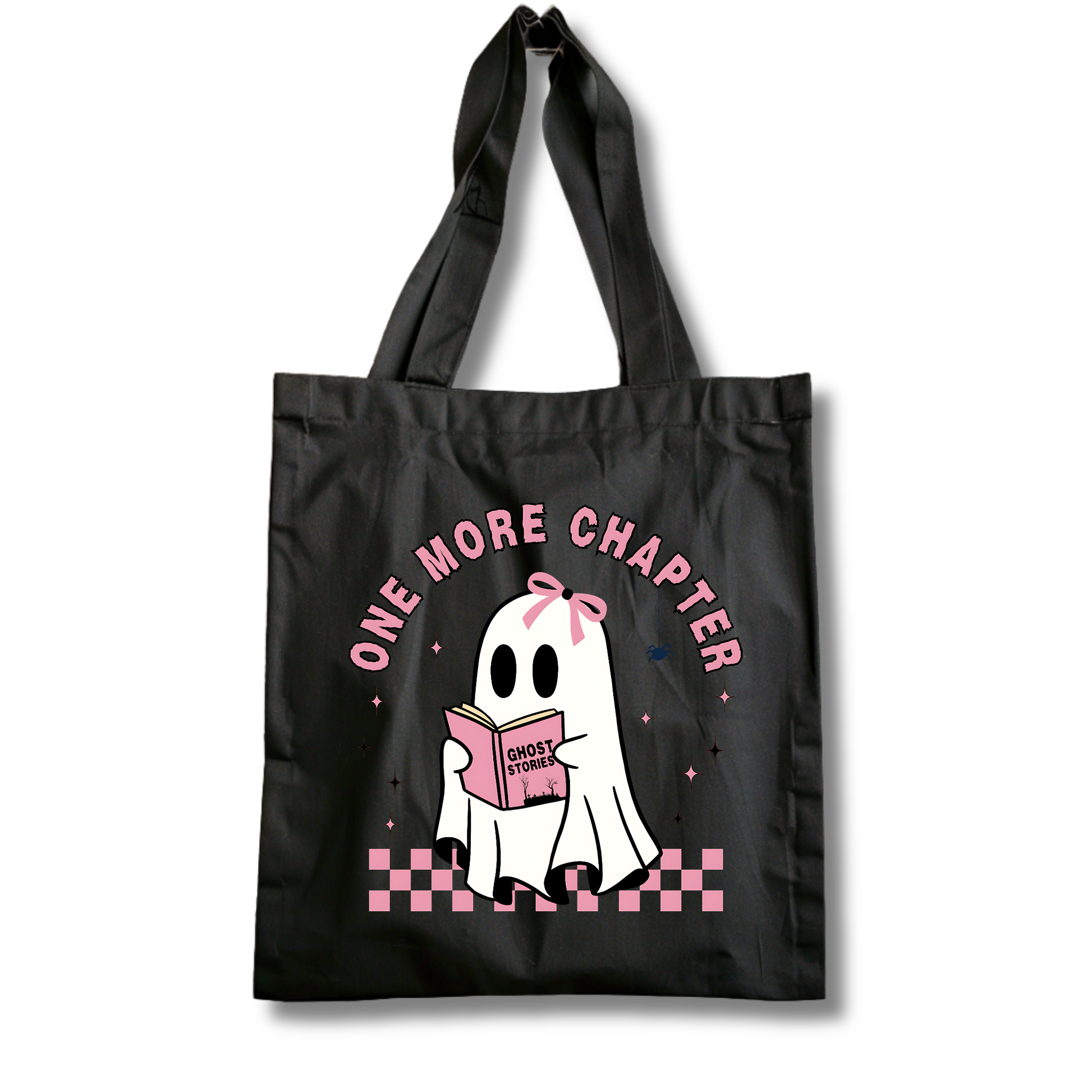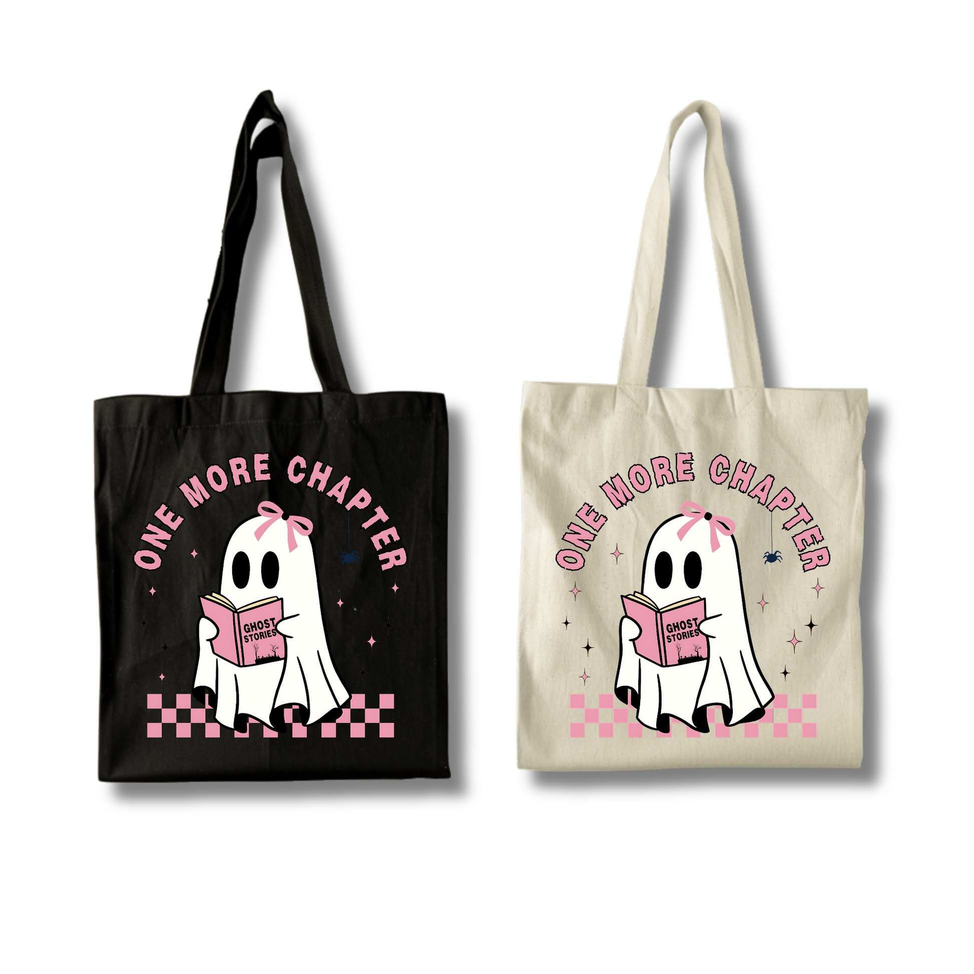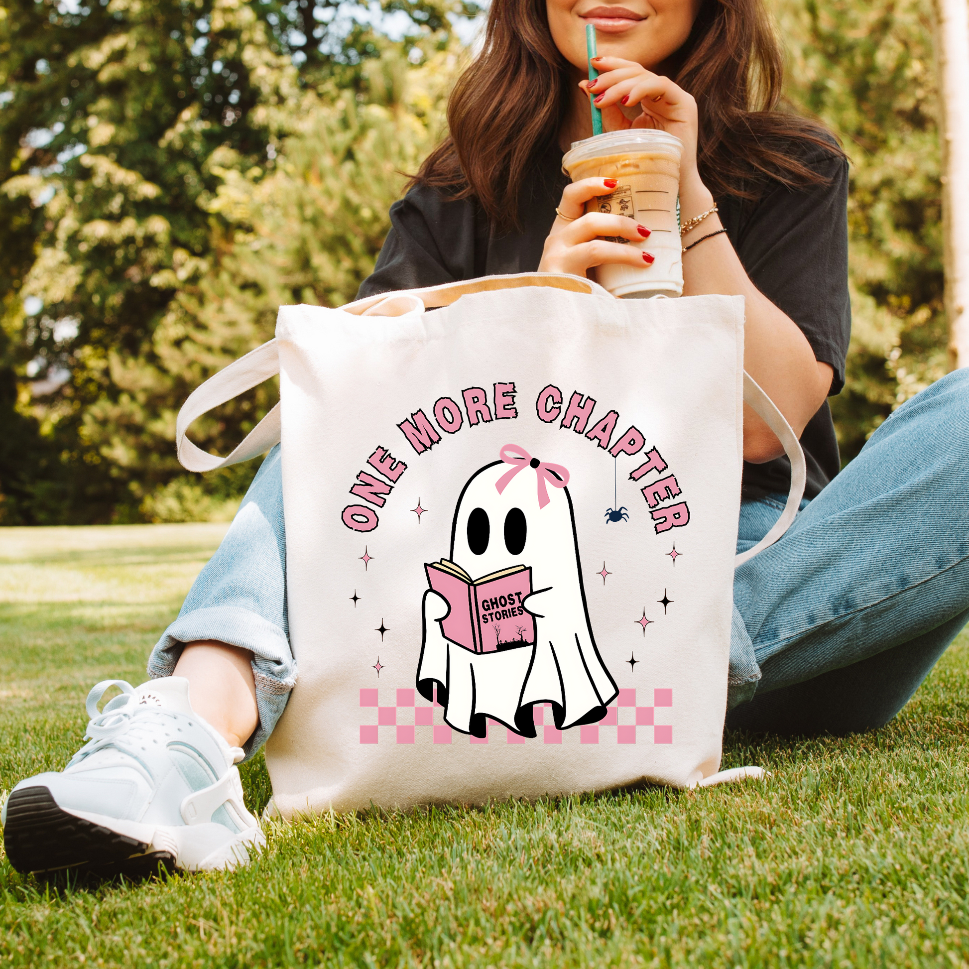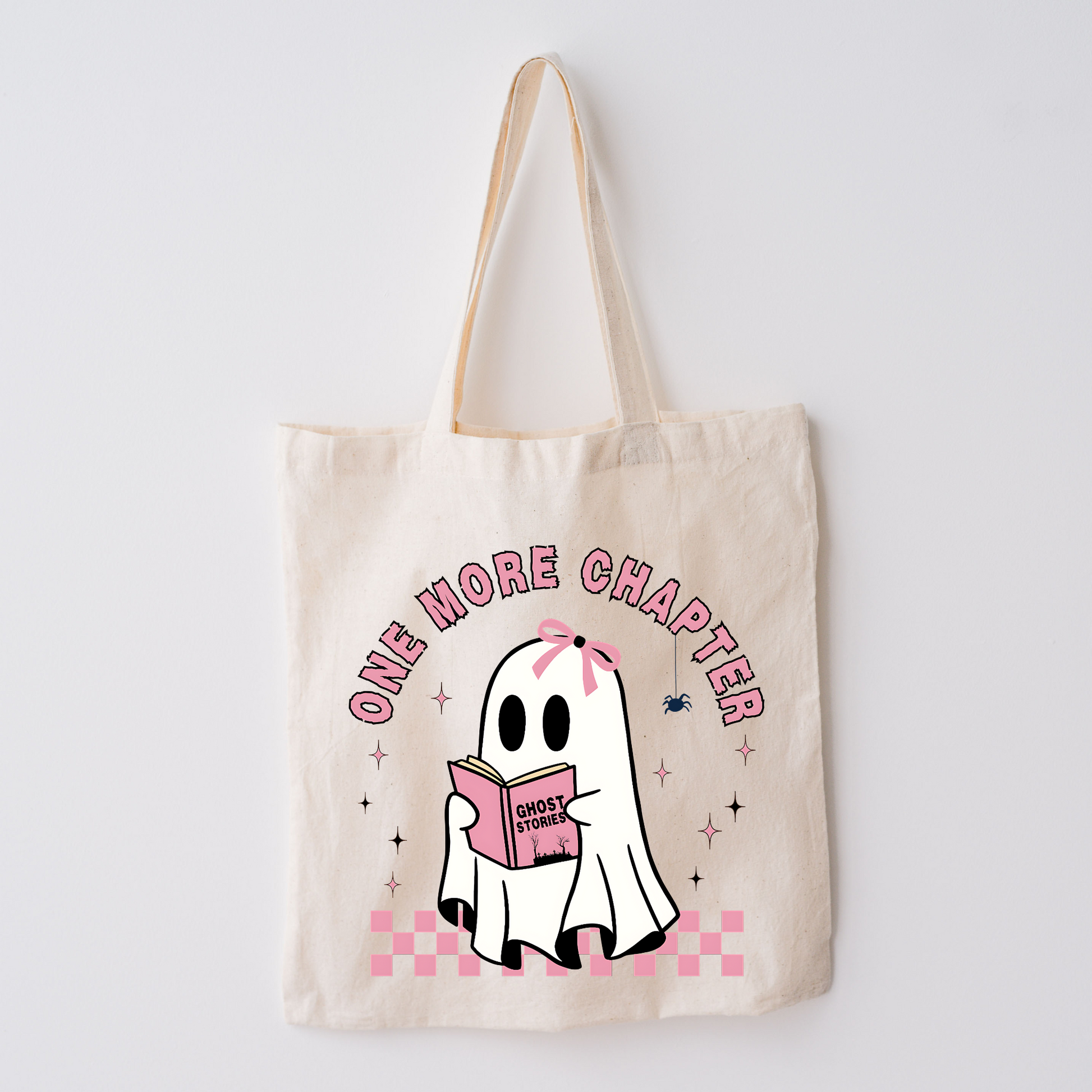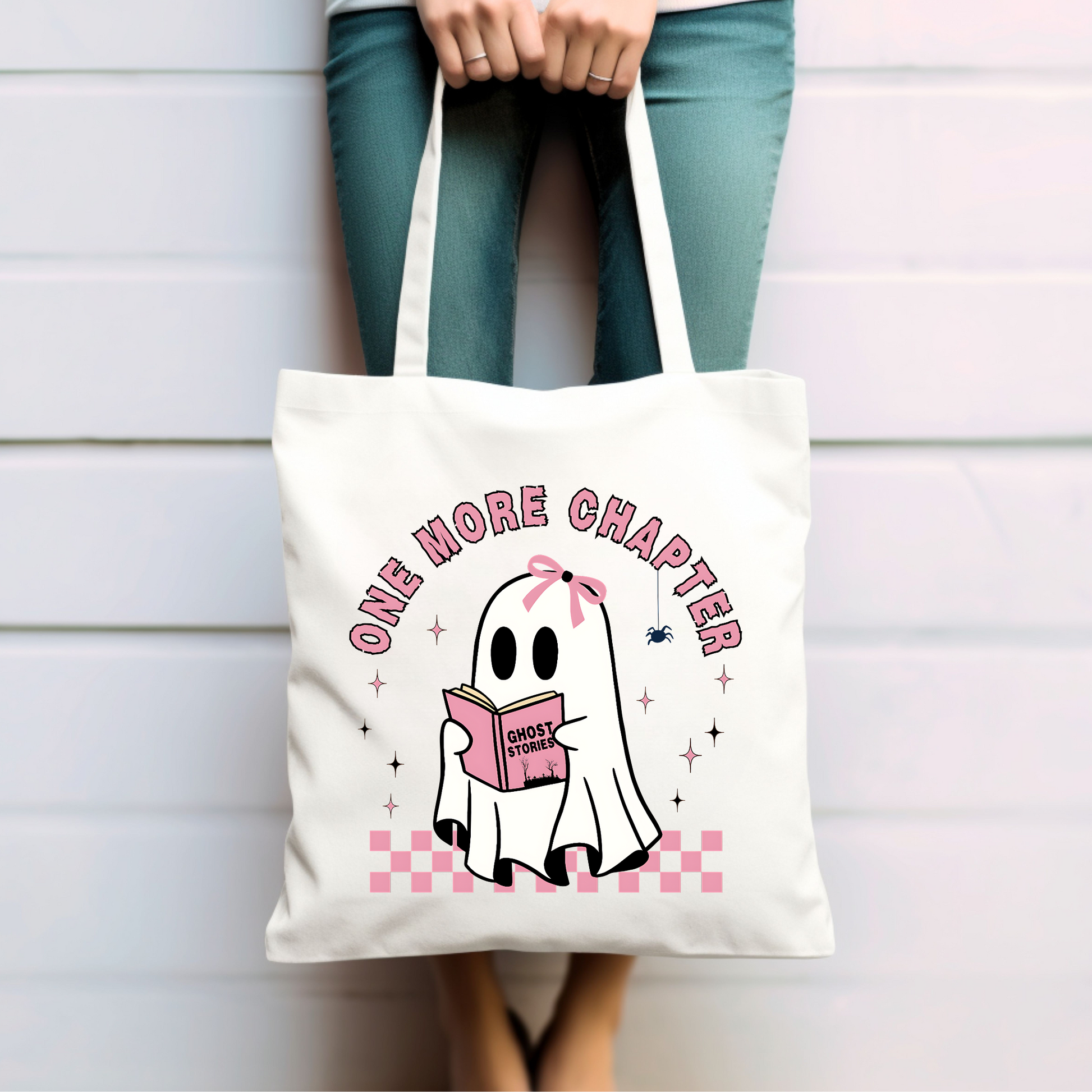 One More Chapter Canvas Tote Bag – Christian Halloween Bookish Ghost