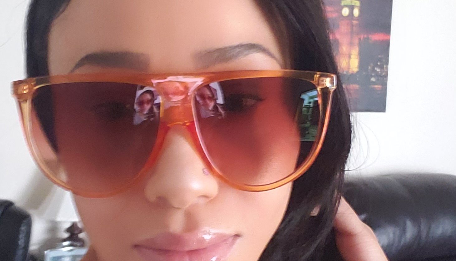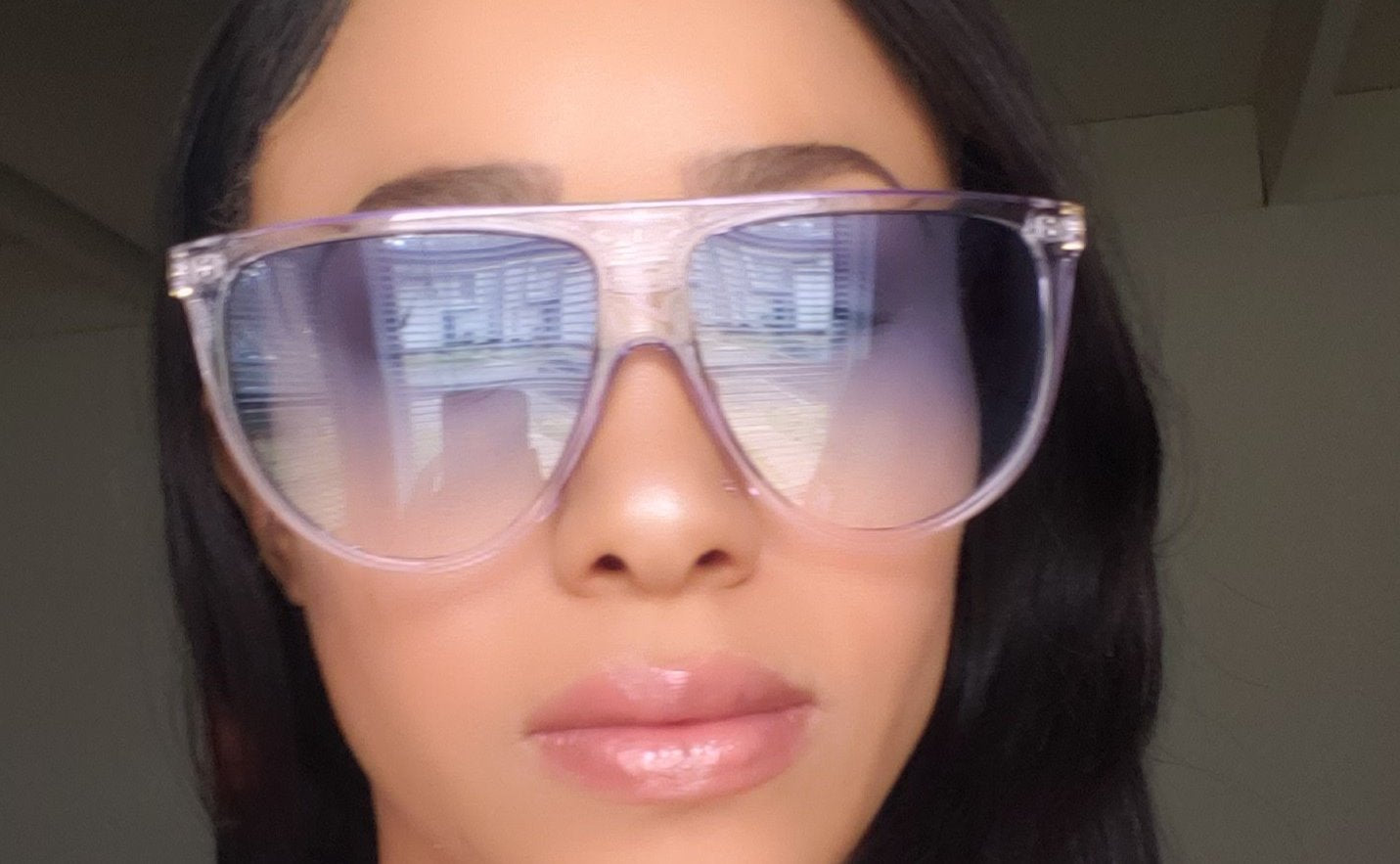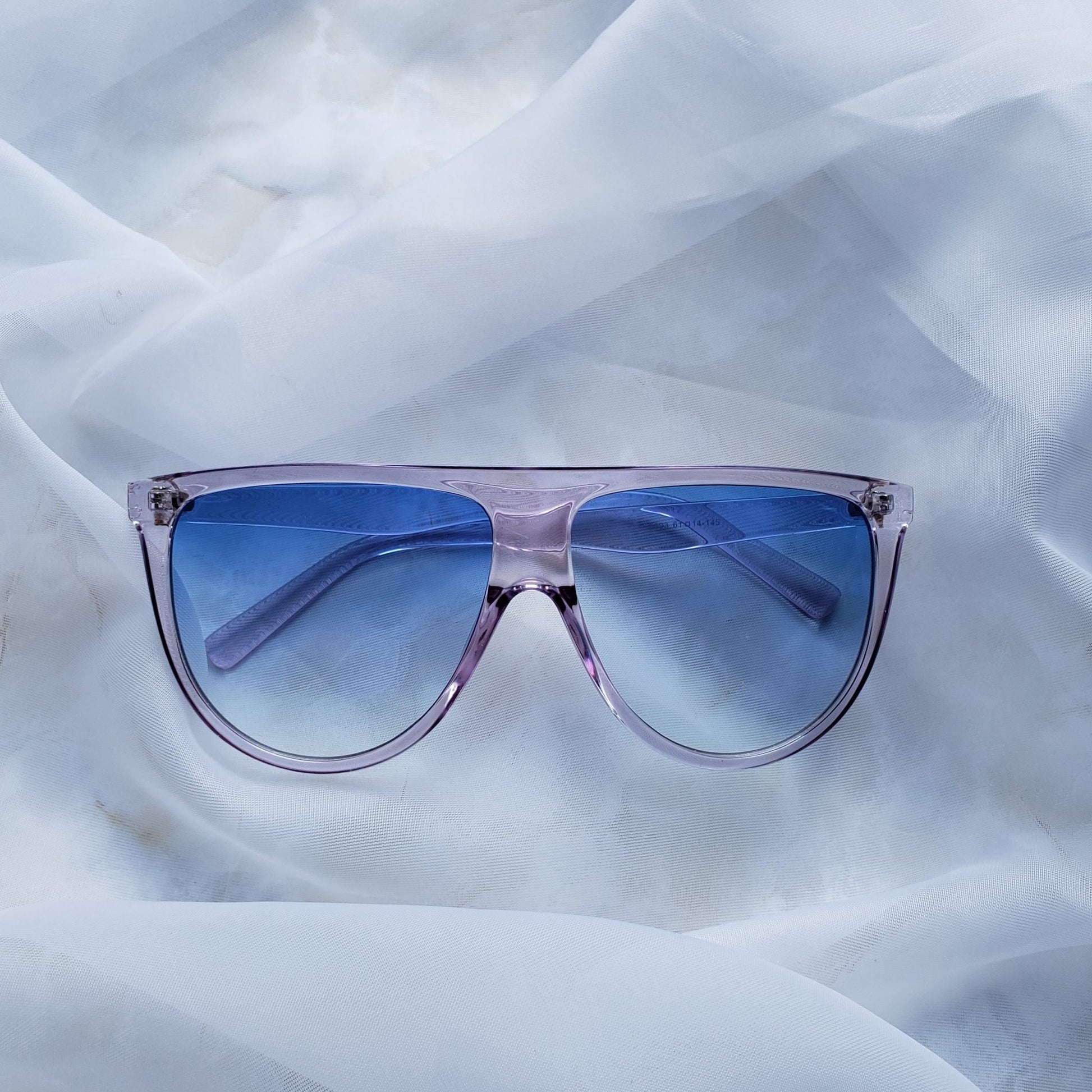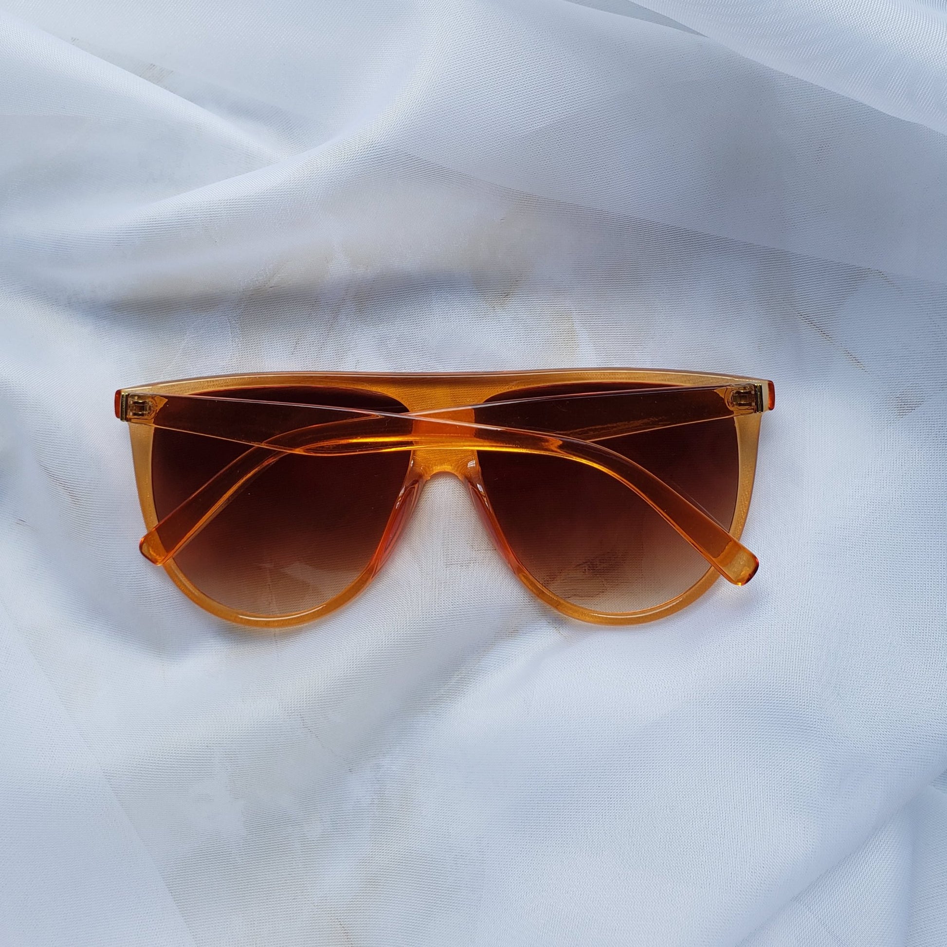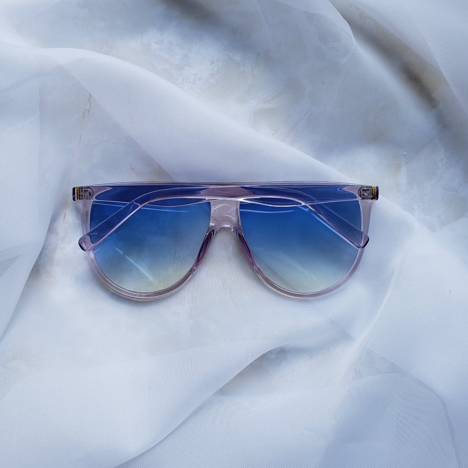 Over Size Sunglasses. Tinted blue and peach sunglasses with hard plastic frames