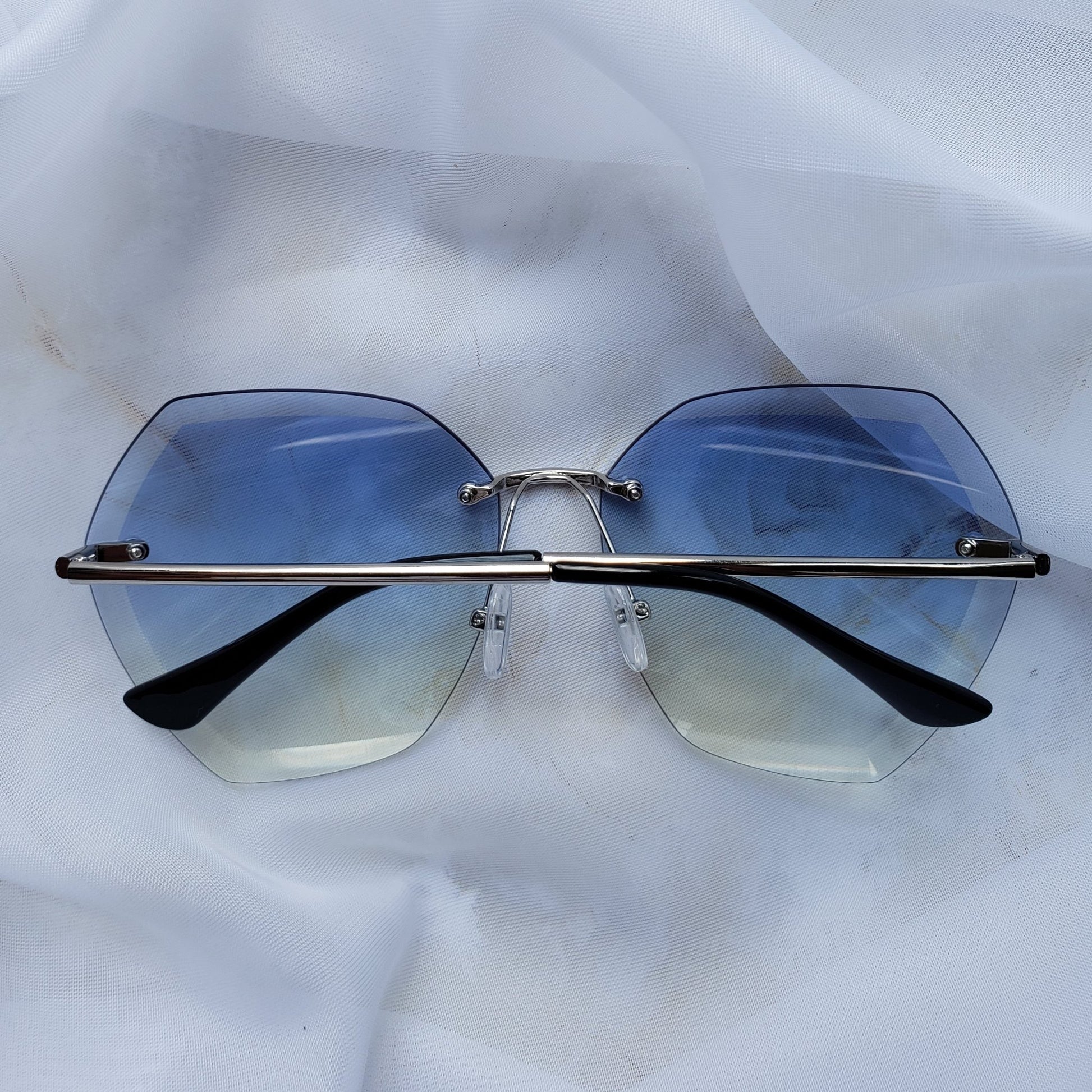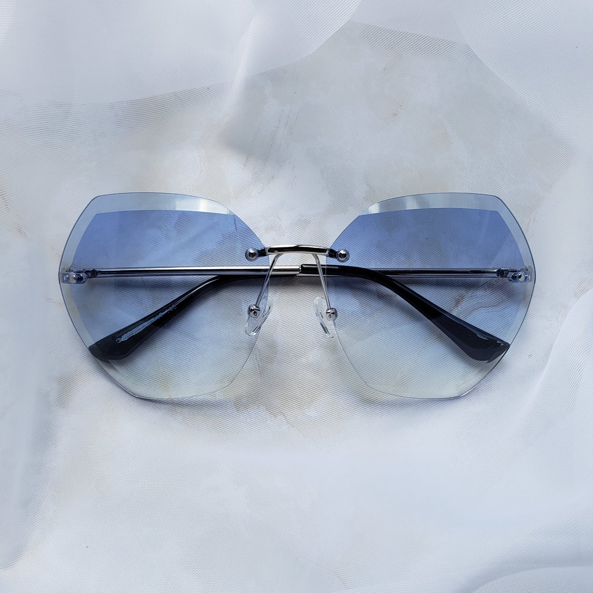 - Women's Oversized Rimless Sunglasses. Designed with stainless steel metal frame and unique hexagon shaped lenses.